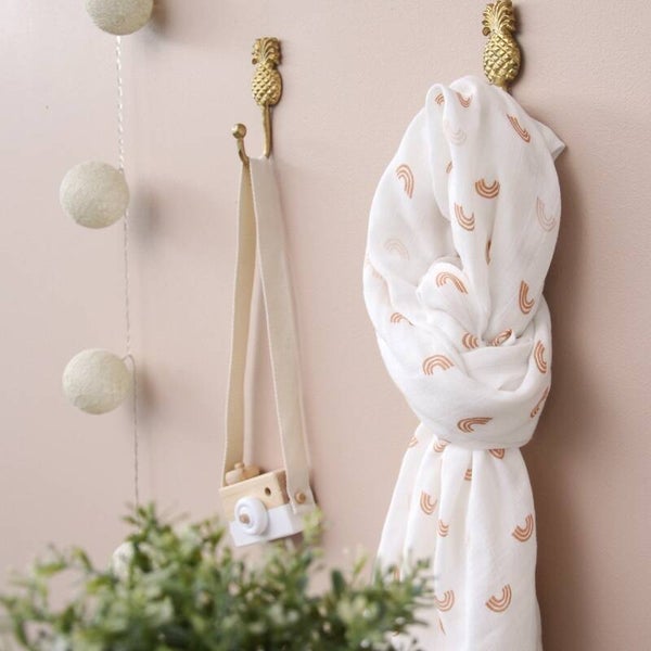 Wikkel je kleintje in de heerlijk grote tetradoek Pompom van Little Crevette. Deze zachte hydrofiele doek is door zijn vele toepassingen een musthave voor elke mama en/of papa. Leg hem over je schouder om je kledij te beschermen, gebruik hem als verschoningsmatje op verplaatsing of maak hem vast aan de kinderwagen om je kindje te beschermen tegen de zon. Deze mooie witte muslindoek staat vol met vrolijke, roze regenboogjes.